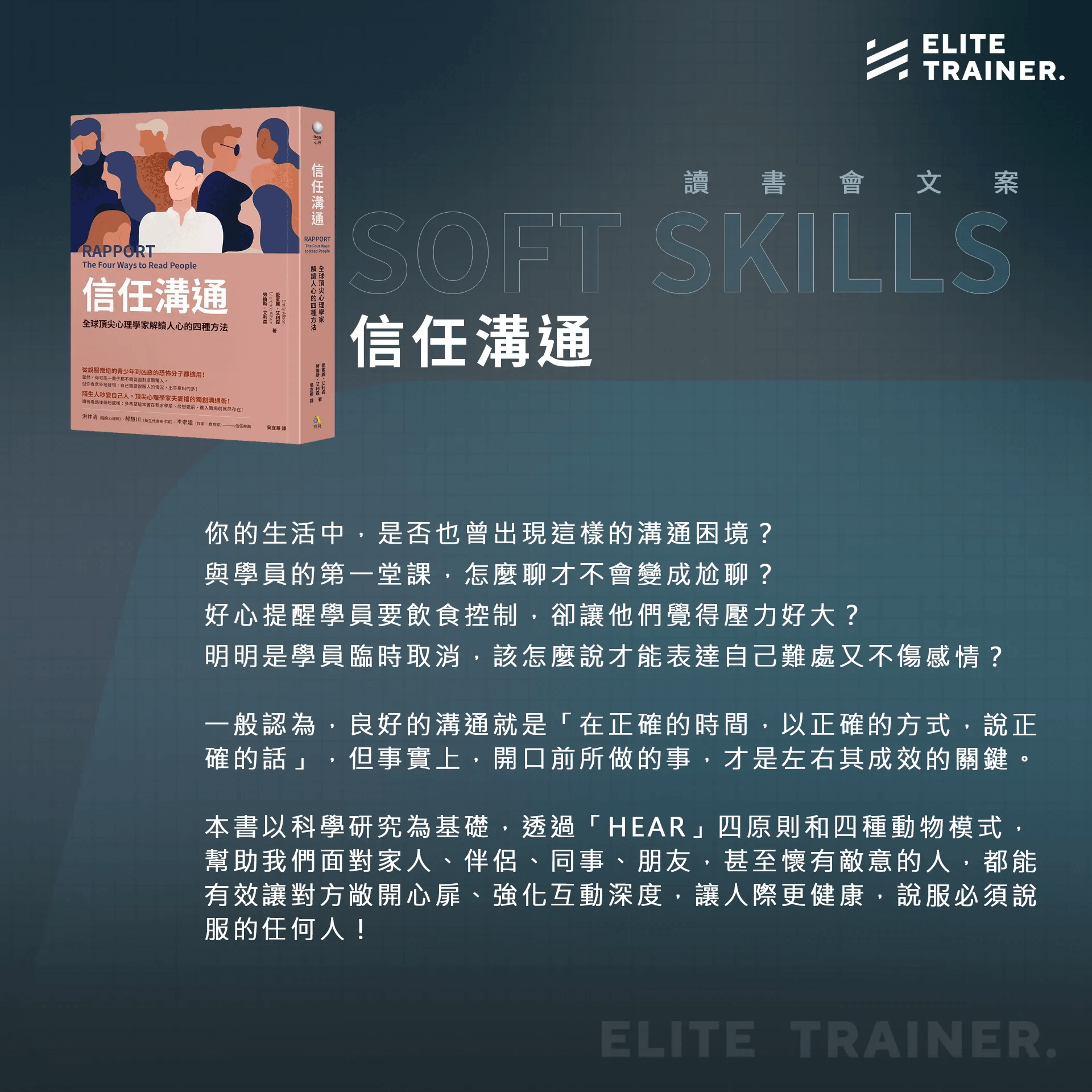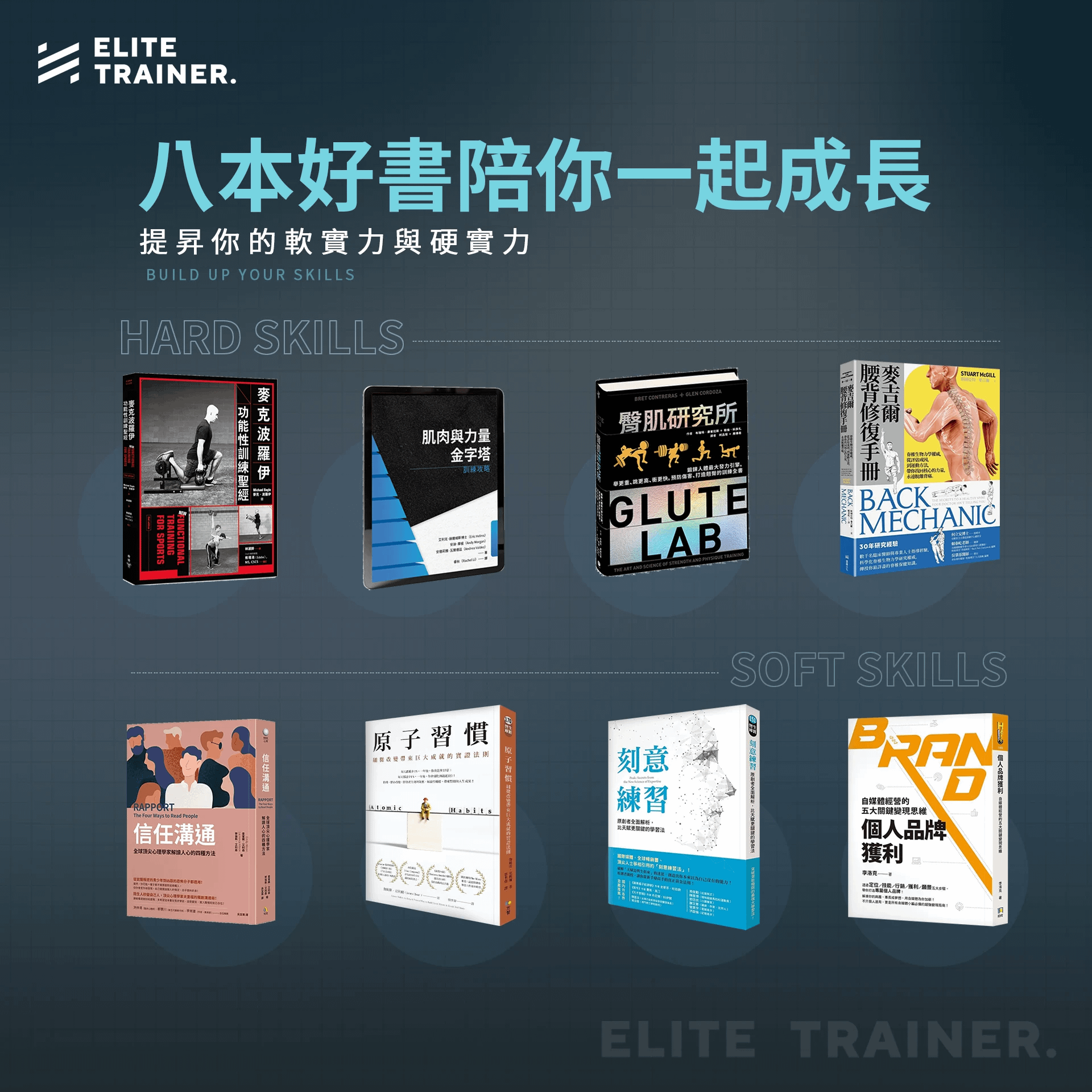 所以,我特別選出了8本好書(4本硬知識、4本軟實力),透過讀書會的方式,帶你練就組合技,成為頂尖教練。
